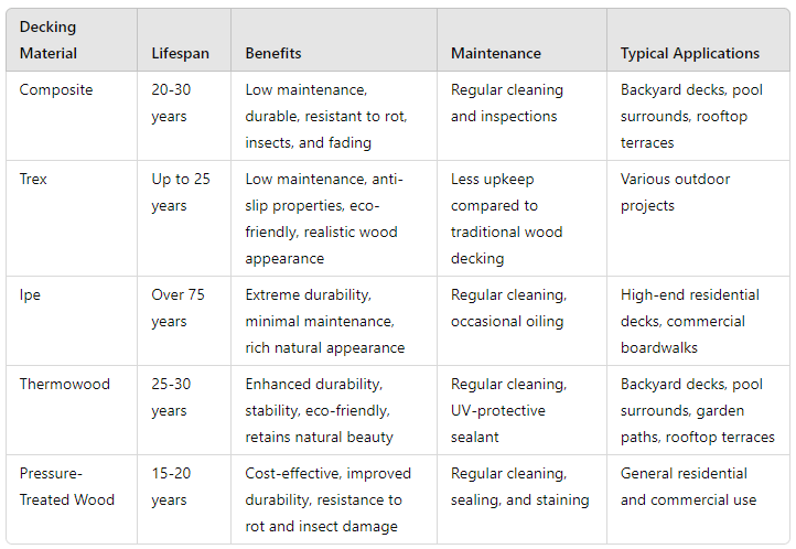 Types of Decking Materials and Their Lifespan