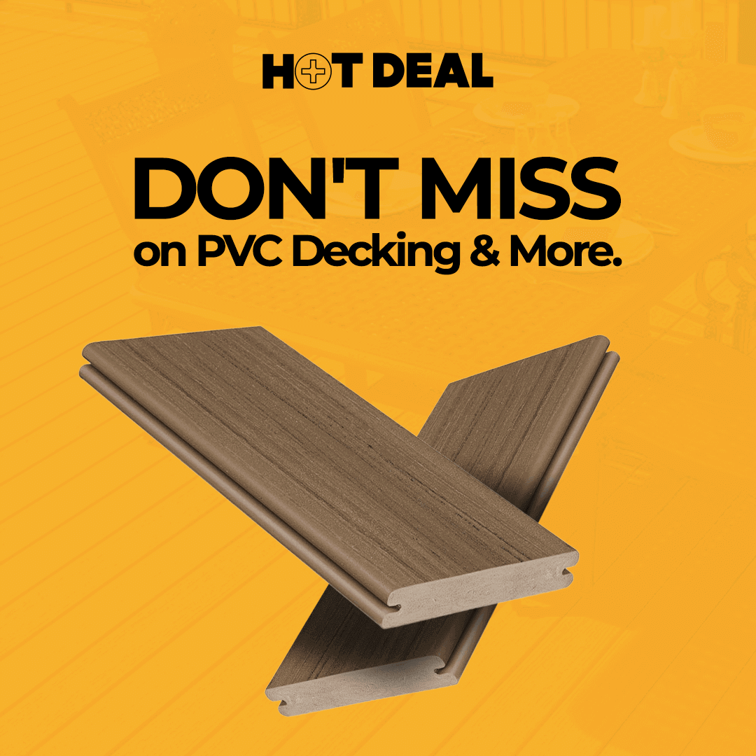 PVC is a great decking option. It is engineered to have a solid uniform cell structure, completely sealed with a hardcover cap for ultimate protection and durability. PVC products do not contain fillers or organic ingredients and provide a rugged and durable, yet lightweight product that will not rot, grow mold, splinter, or allow termites to fester.