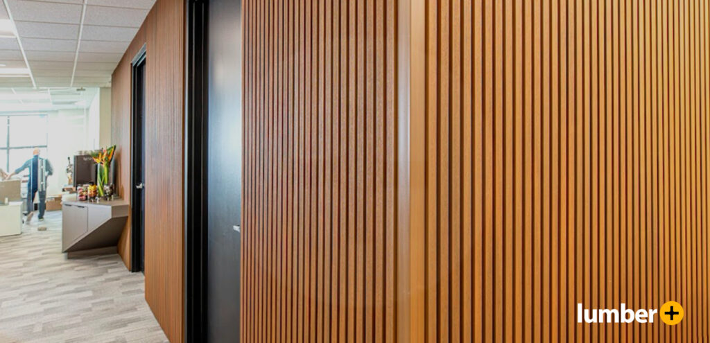 4. Sleek Vertical Wood Slats for a Contemporary Office